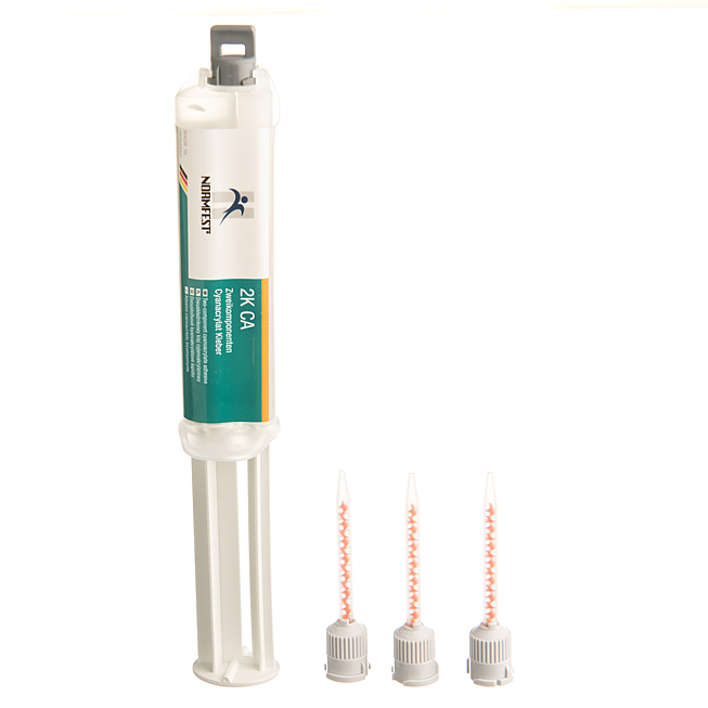 2K CA je dvousložkové rychle tuhnoucí lepidlo vyplňující spáry, které je díky své vynikající přilnavosti vhodné pro mnoho materiálů, jako jsou plasty, guma, kov, kůže. Používá se ke spojování dílů s různými nebo nedefinovanými mezerami lepidla do 6 mm nebo pro aplikace, ve kterých musí přebytečné lepidlo úplně vytvrdnout. Gelová konzistence zabraňuje stékání a je ideální pro rychlé nouzové opravy všeho druhu. Teplotní odolnost: -40 ° C až 80 ° C.
